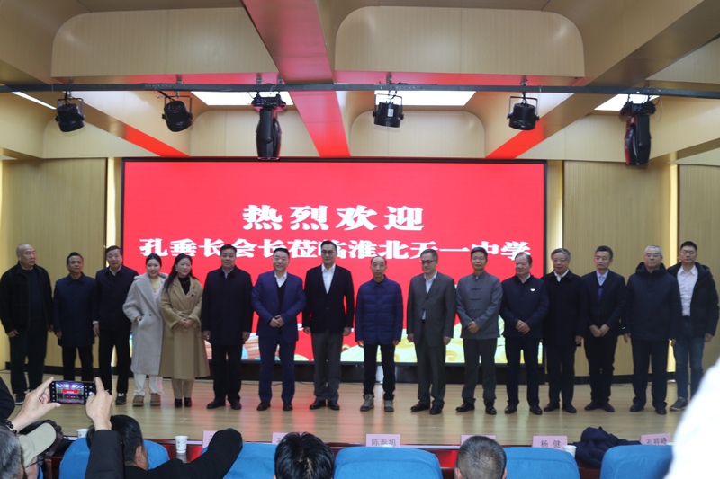 3月3日上午,孔垂長會長在安徽孔子后裔聯誼會副會長、淮北分會會長、天象集團董事長孔令發及天一中學校長林祥華等陪同下,參訪由孔氏宗親創辦的天一中學。該校由孔令發旗下天象集團與淮北市第一中學聯合投資2億元,占地200余畝,建筑面積超11萬平方米,于2005年動工興建,2006年建成后實現秋季招生,現有初高中班級85個、學生5000余名,是安徽省體育傳統學校、淮北市文明校園,并獲多所一本院校授予“優質生源基地”。