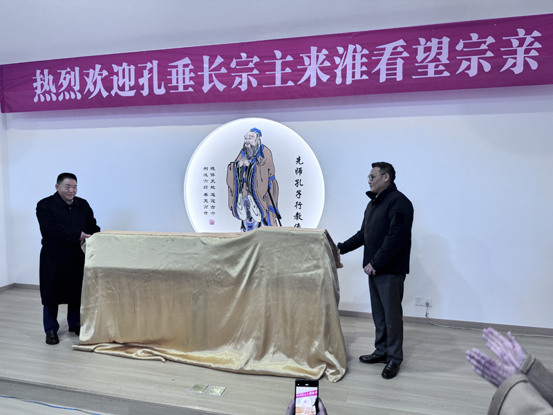 活動之前,孔垂長與孔令發共同為《孔子世家譜·淮北卷》及“孔子學堂”孔子像揭幕,象征家族文脈與儒家精神代代相傳。