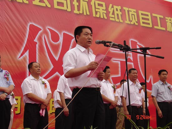 市委書記、市人大常委會主任畢美家代表市委、市政府對項目奠基表示熱烈祝賀。他說,天象龍盟環保紙項目的實施,對于我市大力推進工業強市戰略,優化產業結構,發展循環經濟,建設資源節約型、環境友好型社會,加快城市轉型步伐具有重要的引領作用,對于淮北調結構、保增長、促就業具有重要的現實意義。