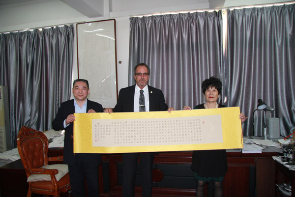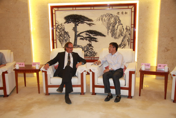 2015年9月28日,加拿大安大略省查塔姆肯特市市長 MR.Randy Hope(蘭迪市長)一行蒞臨集團(tuán)公司參訪考察,并與孔令發(fā)董事長進(jìn)行商務(wù)洽談。集團(tuán)公司董事長孔令發(fā)、總裁徐希慶、淮北華翊文創(chuàng)園項目總經(jīng)理蔡明鴻等陪同參觀。
