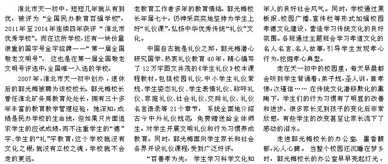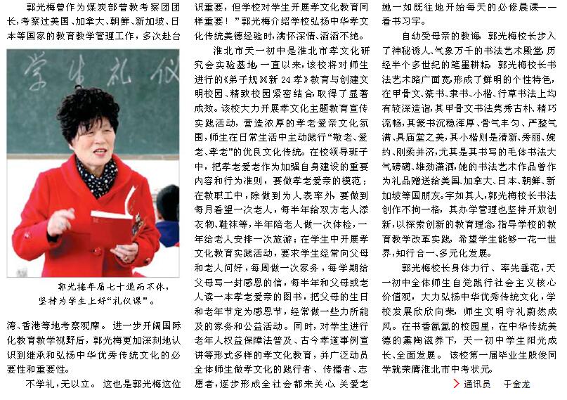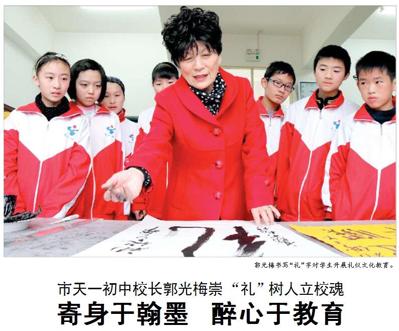 媒體報(bào)道:天一初中校長郭光梅崇“禮”樹人立校魂 寄身于翰墨 醉心于教育