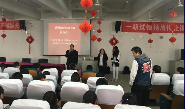 在參訪過程中,Kirsten一行走進天一高中部高一(3)班與初中部初一的3個班級與同學們進行簡短的互動交流。隨后,Kirsten在多媒體教室向同學們推介了查塔姆肯特市的地理區位以及教育環境,還重點向同學們介紹了她們市教育局的教學理念與學習氛圍。最后,Kirsten向在座的學生們發出誠摯的邀請。同時,學生們也就自己感興趣的問題向Kirsten一一詢問。