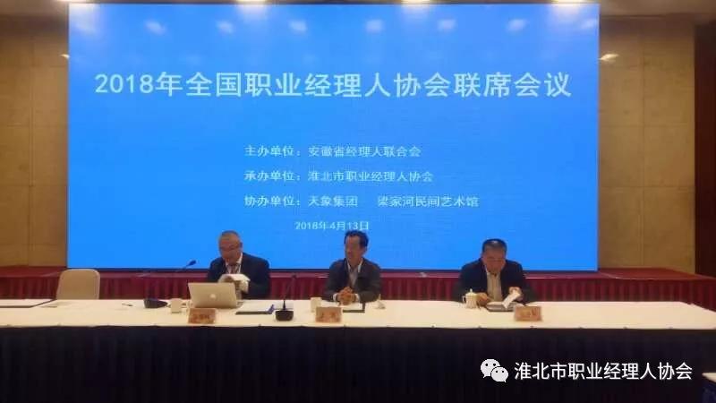 2018年全國職業經理人協會聯席會議暨淮北市工商聯招商推介會于4月13日~14日在淮北市口子國際大酒店圓滿結束。本次會議是安徽省經理人聯合會主辦、淮北市職業經理人協會承辦、天象集團協辦的全國性會議。淮北職業經理人協會會長、天象集團董事長孔令發出席會議并致辭。